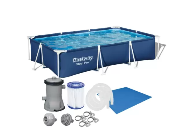 Piscina Estrutural 3300L Retangular Azul + Bomba Filtrante + Forro Bestway Oferta